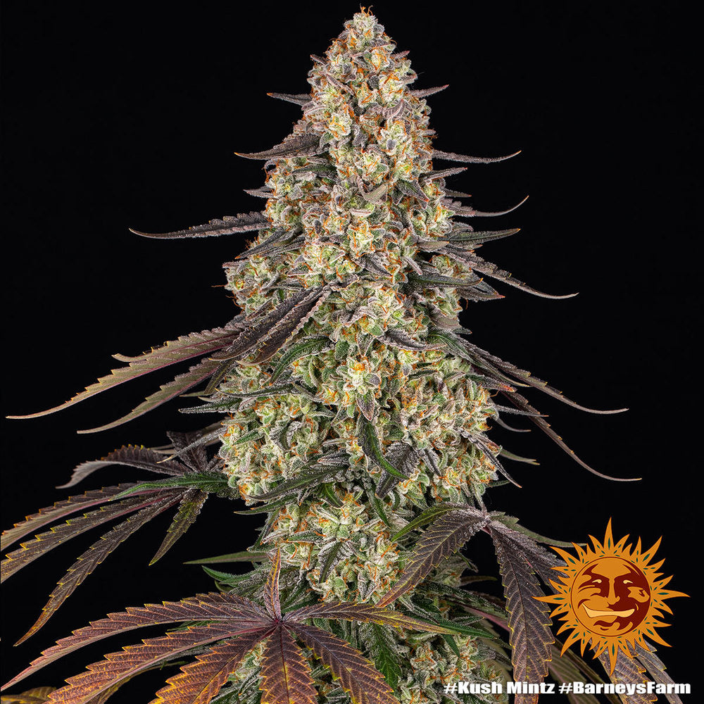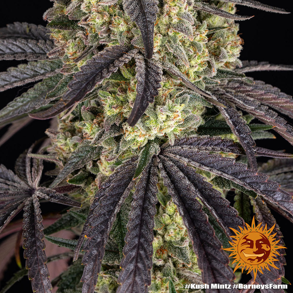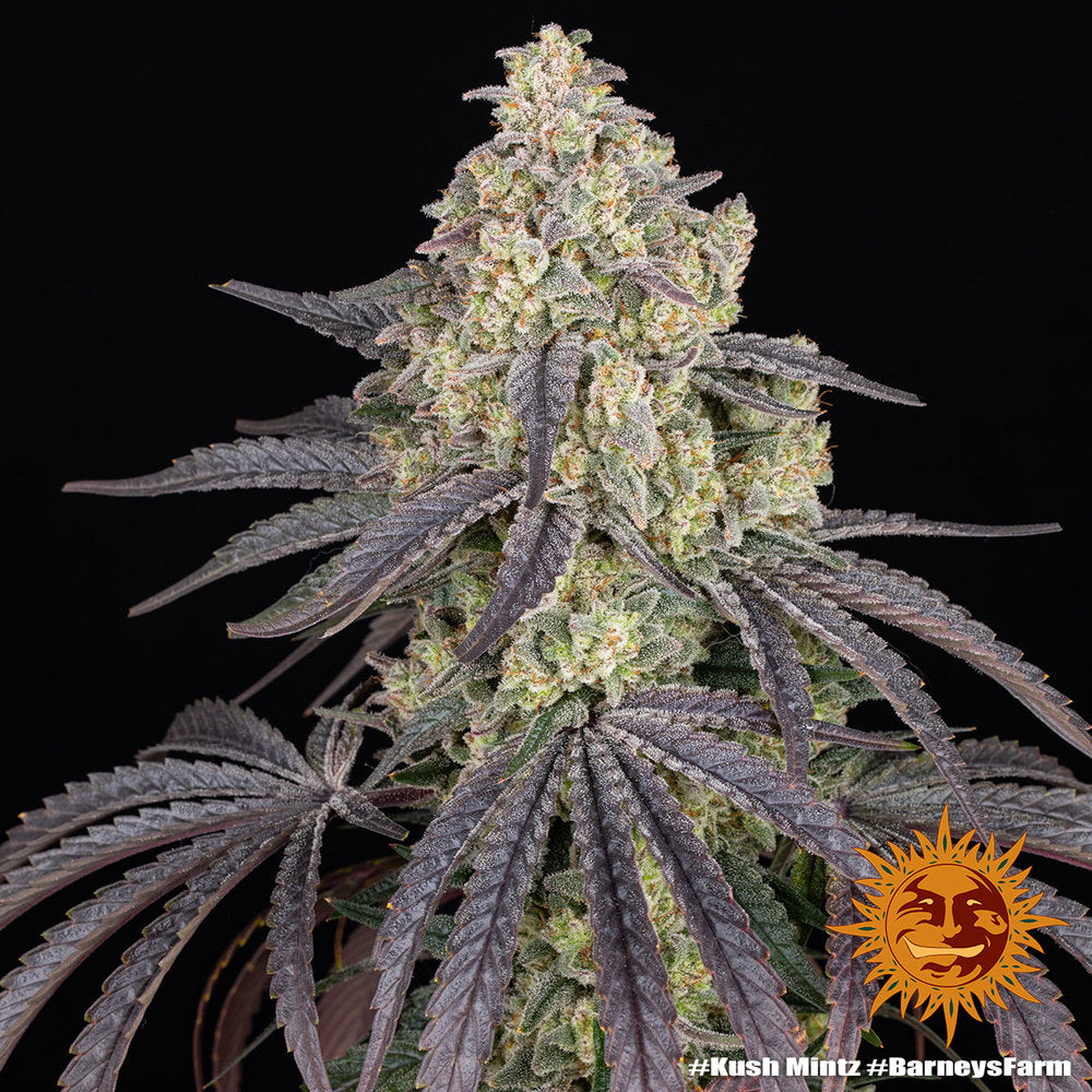 The Mintz unsurprisingly further enhances those famous earthy Pine and sweet citrus Kush aromas with hints of coffee and delicate hints of minty cookies! Kush Mintz Strain is extremely resinous, sticky to the touch with a heavy coating of trichomes covering the familiar light green colours with occasional dark green and purple contrasting fan leaves protrude from its dense flowering structure.
