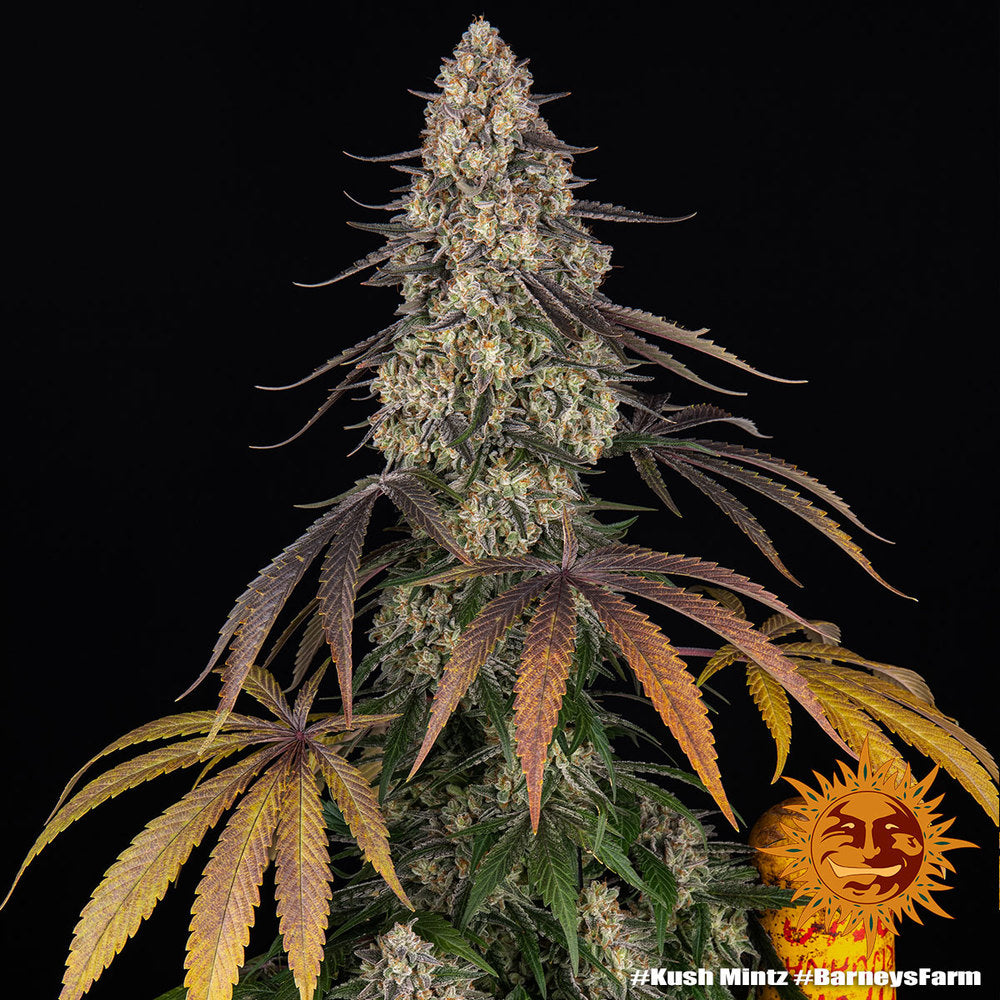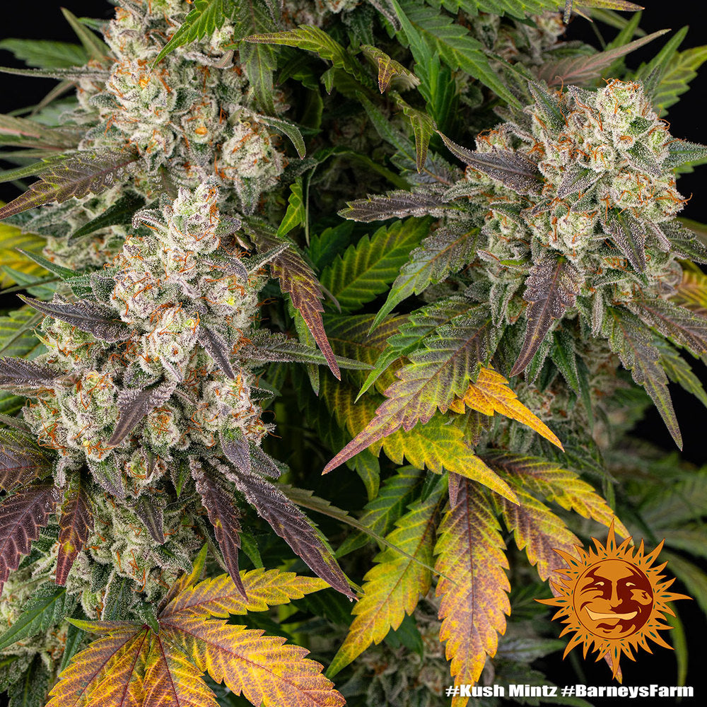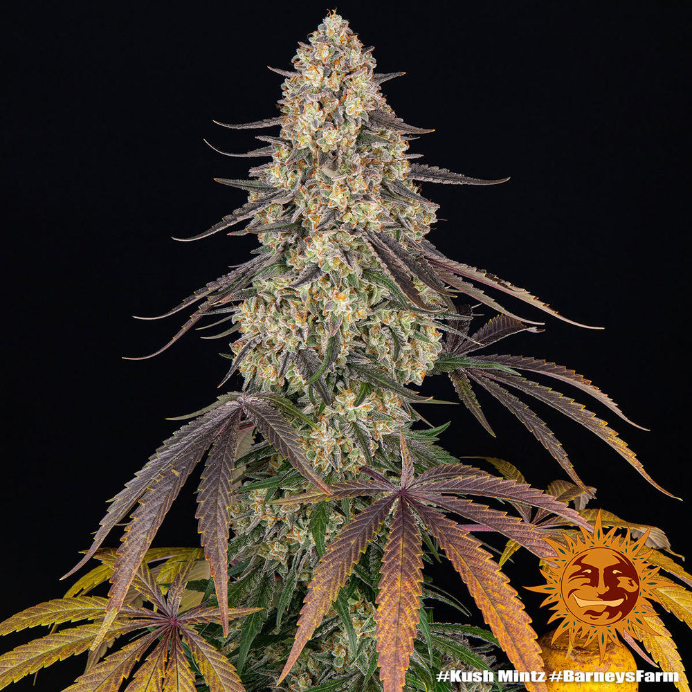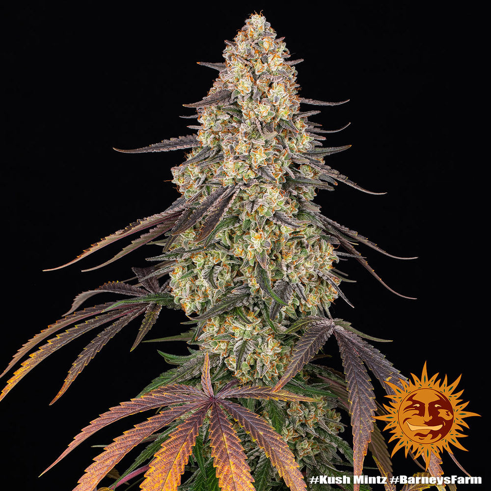 The Mintz unsurprisingly further enhances those famous earthy Pine and sweet citrus Kush aromas with hints of coffee and delicate hints of minty cookies! Kush Mintz Strain is extremely resinous, sticky to the touch with a heavy coating of trichomes covering the familiar light green colours with occasional dark green and purple contrasting fan leaves protrude from its dense flowering structure.