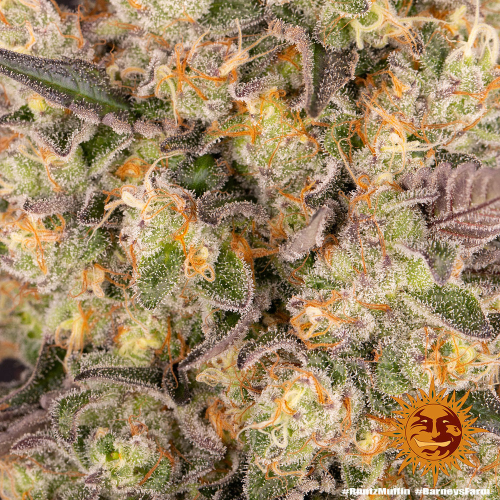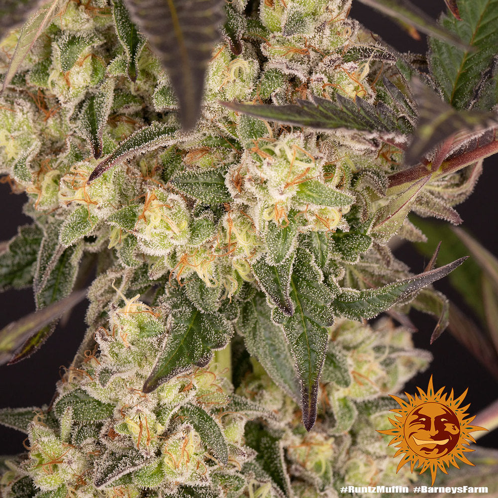 Barneys Farm Runtz Muffin strain is the result of the diligent amalgamation of Zkittlez x Gelato, this gratifying Cookies descendant will delight you with her remarkable flavours and potent, balanced nature. The lab then delicately fused our Orange punch to not only increase the indica % but adding significant production benefits. Experiencing this delicacy is like being wrapped up in a sweet smelling blanket of perfumed lavender bliss with a faint twist of clementine. Dense, smouldering smoke delivers a fruity hit of joy and euphoria that stretches throughout your day. Bathe away your worries and strife in a sumptuous sea of fruity flavours, buds literally dripping in an intoxicating syrup pushing the needle to a prodigious 29% THC.