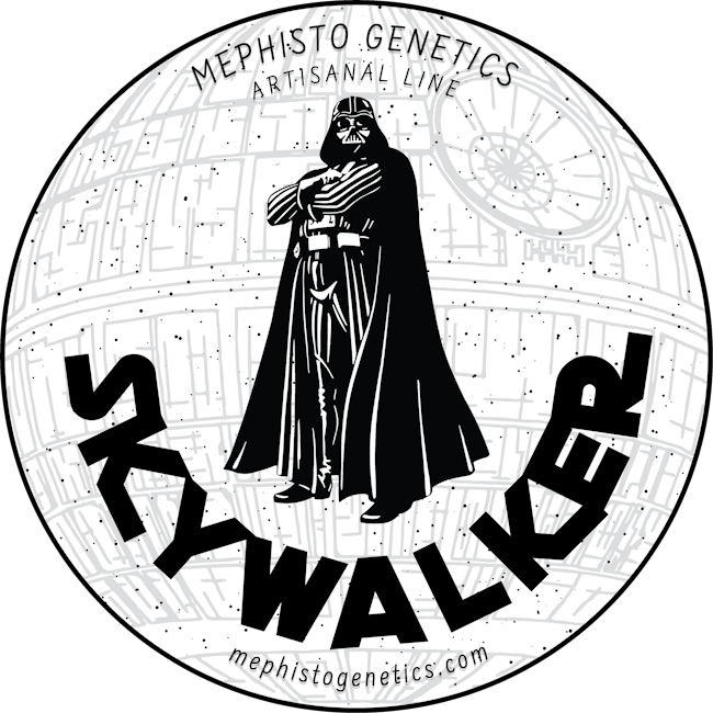 Skywalker displays exactly the next generation of Mephisto, Artisanal quality. The photoperiod Skywalker cut that we selected to work with for this project was something that we ran perpetually, and as soon as someone tried it once they remembered it forever - we'd always be asked... more Skywalker, more Skywalker. The aromas and terpenes were very distinctive and very strong, and these have certainly transferred through to our auto version. Skywalker is NOT a low-odour variety, we'd recommend you have your filtration in tip top condition. The smoke on this lady is superb and she's one of our choice strains to run for bubble-hash, it makes some really fine melty product.