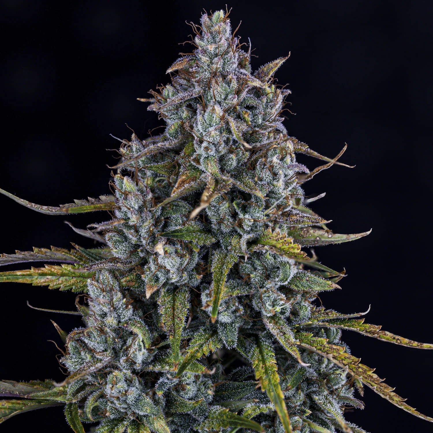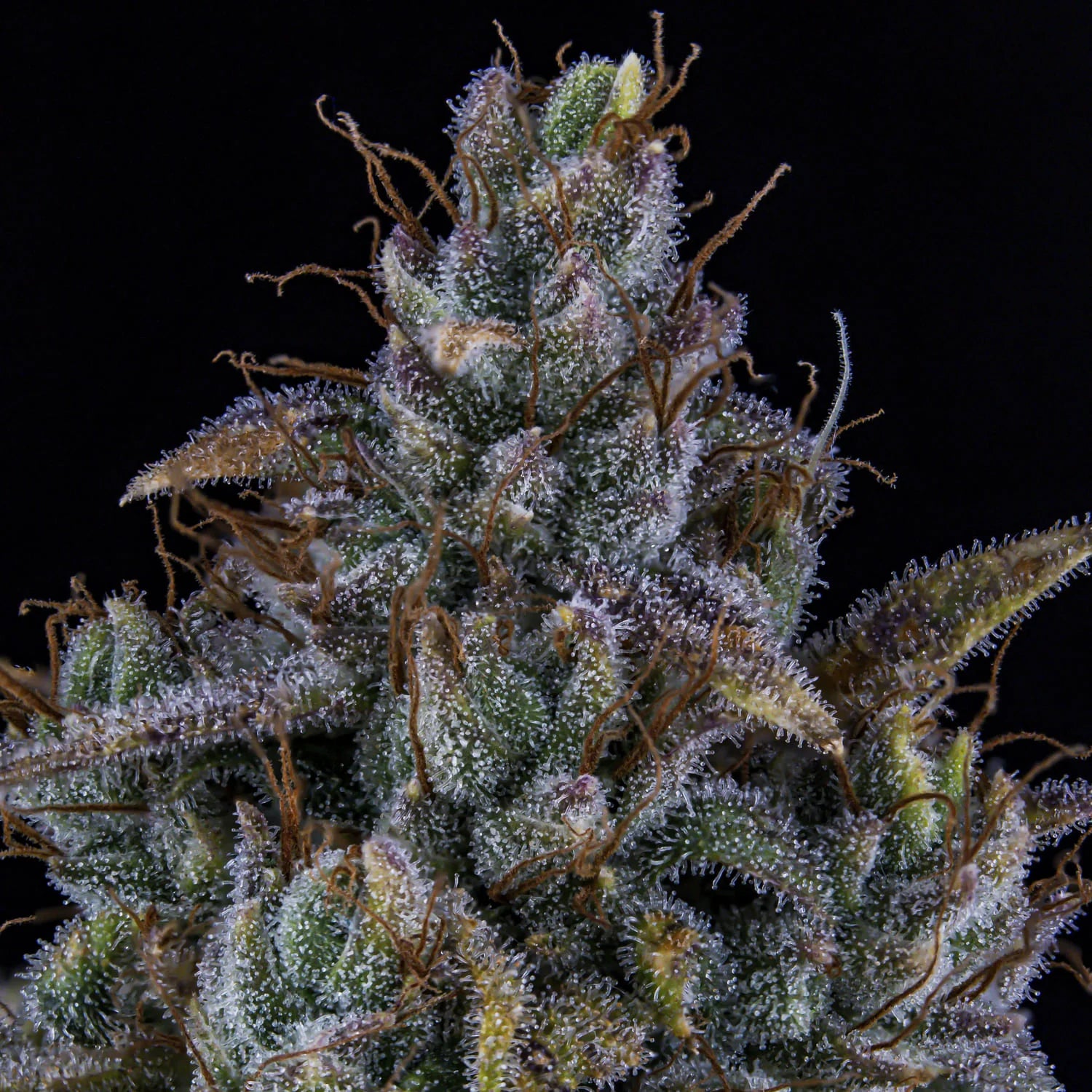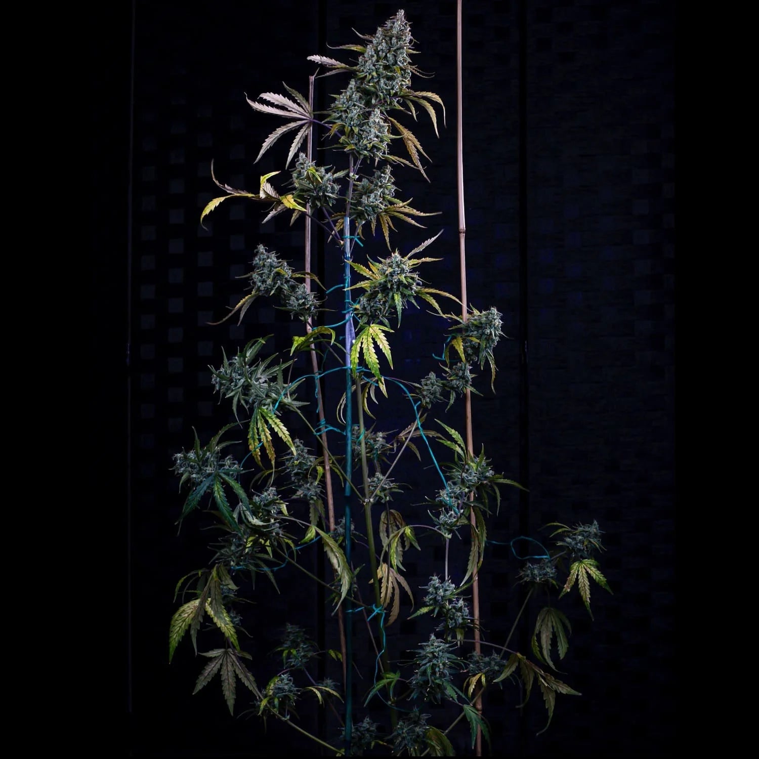 Sour Bubbly is a killer combination of two of Mephisto Genetics best strains. The best qualities from each of the parents shine through. They took a 24 carat female (Sour boggle cut x purple indica auto) and hit her with some Hubbabubbasmelloscope male pollen (Bubblegum cut x w.w auto). The result is a hybrid with fantastic vigour from the hubbabubbasmelloscope, even in restrictive pots she can reach 120cm. But the buds are 24 carat dominant, Sour, hard and dripping with resin. She is an amazing hashplant! Stems, fan leaves, everywhere, completely covered with trichomes! Late in flower her buds look grey with crystals. The smell is sour, strong but with a hint of the bubblegum sweetness in there. The buds are fat, and she has the potential to really yield! If you spot a plant that is kicking into flower a little later than the other girls, train her if you haven't got space, as she has an extra weeks veg time you can make the most of it and get an even higher yield. When she kicks into flower she really goes for it. Sour bubbly is the best of both, she gets big but finishes quickly, and the buds are of impeccable quality. You really can't go wrong with this lady. HIGHLY RECOMMENDED! Sour Bubbly was tested by alpha-cat (www.alpha-cat.org) and the result was 19.5% thc. Treat her kindly and you can achieve up to 90g.